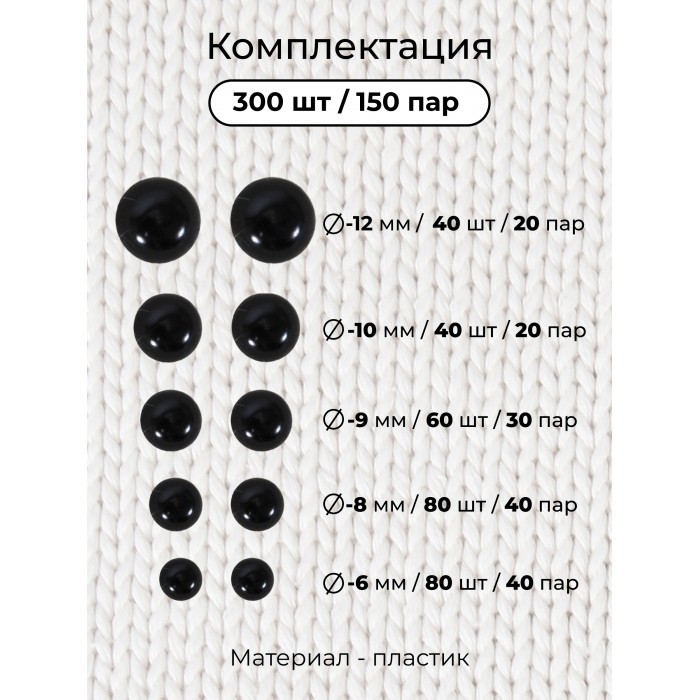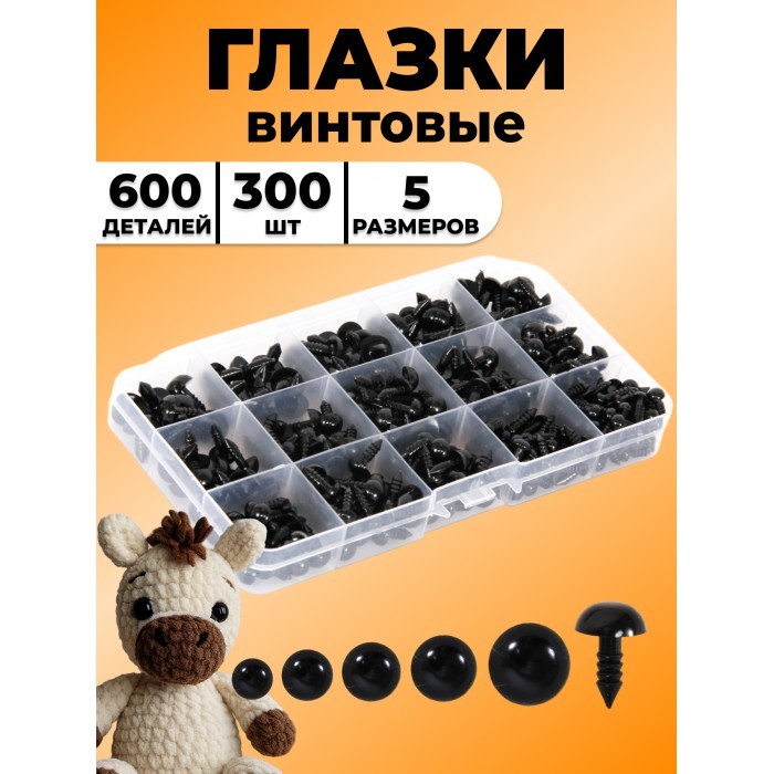Глазки винтовые черные с фиксатором (300 штук/300 фиксаторов) 263095