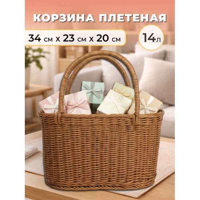 Корзина плетеная с ручками Овал (2 ручки) (32*20*17 ) иск/ротанг, песочный 264262
