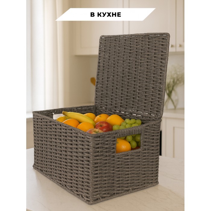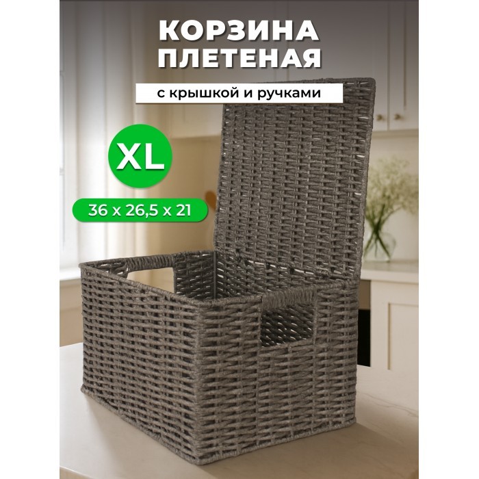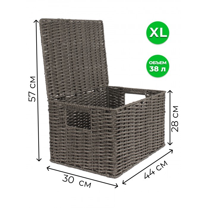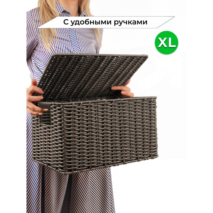 Корзина плетеная с/крыш XL 440*300*280-mpl-fbo иск/ротанг, серый 266226