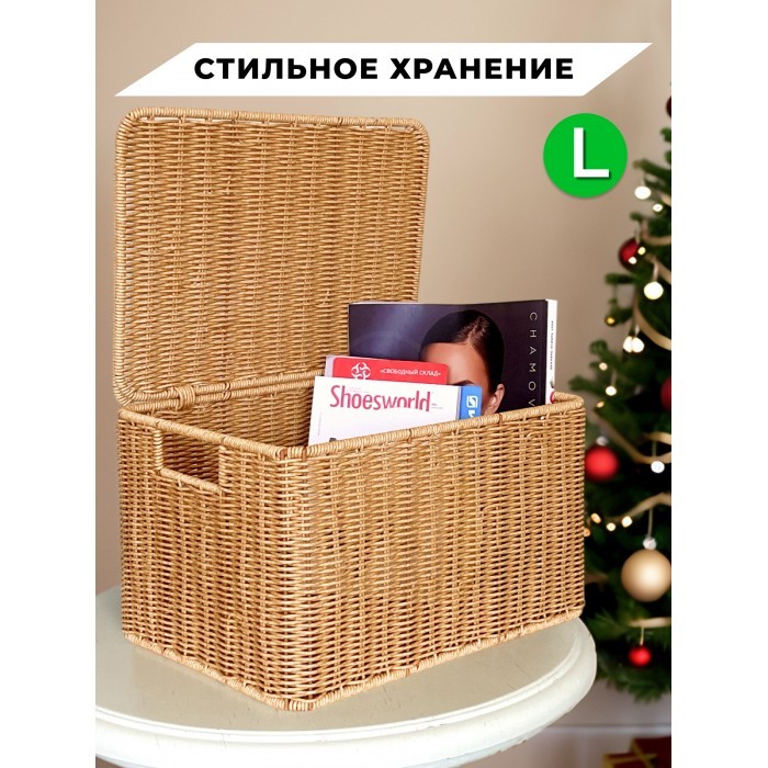 Корзина плетеная с/крыш L 360*260*200-mpl-fbo + салатник 16*7см иск/ротанг, песочный 261622
