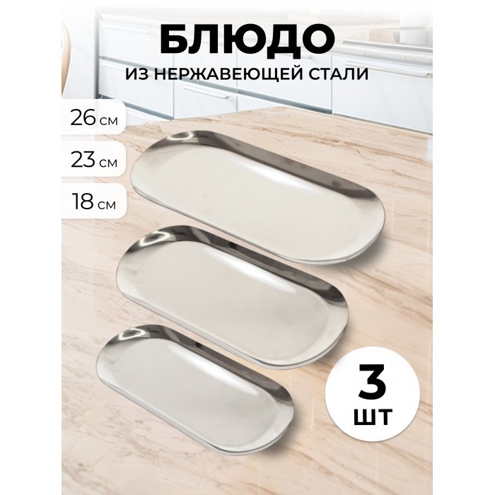 Набор блюд из нержевеющей стали 3 шт ( 18см-1шт+23см-1шт+26см-1шт) серебро 265528