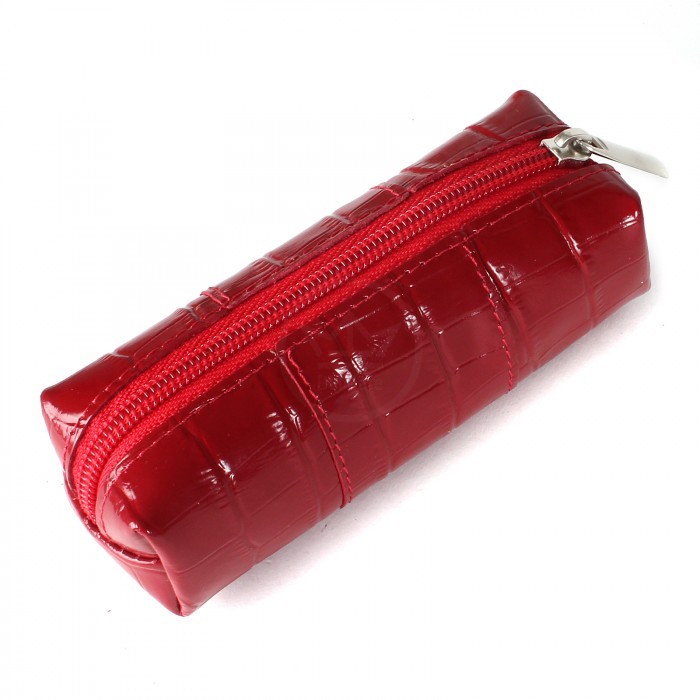 Футляр для ключей Premier-К-25 (бочонок, на молнии) натуральная кожа красный крокодил (115) 107034